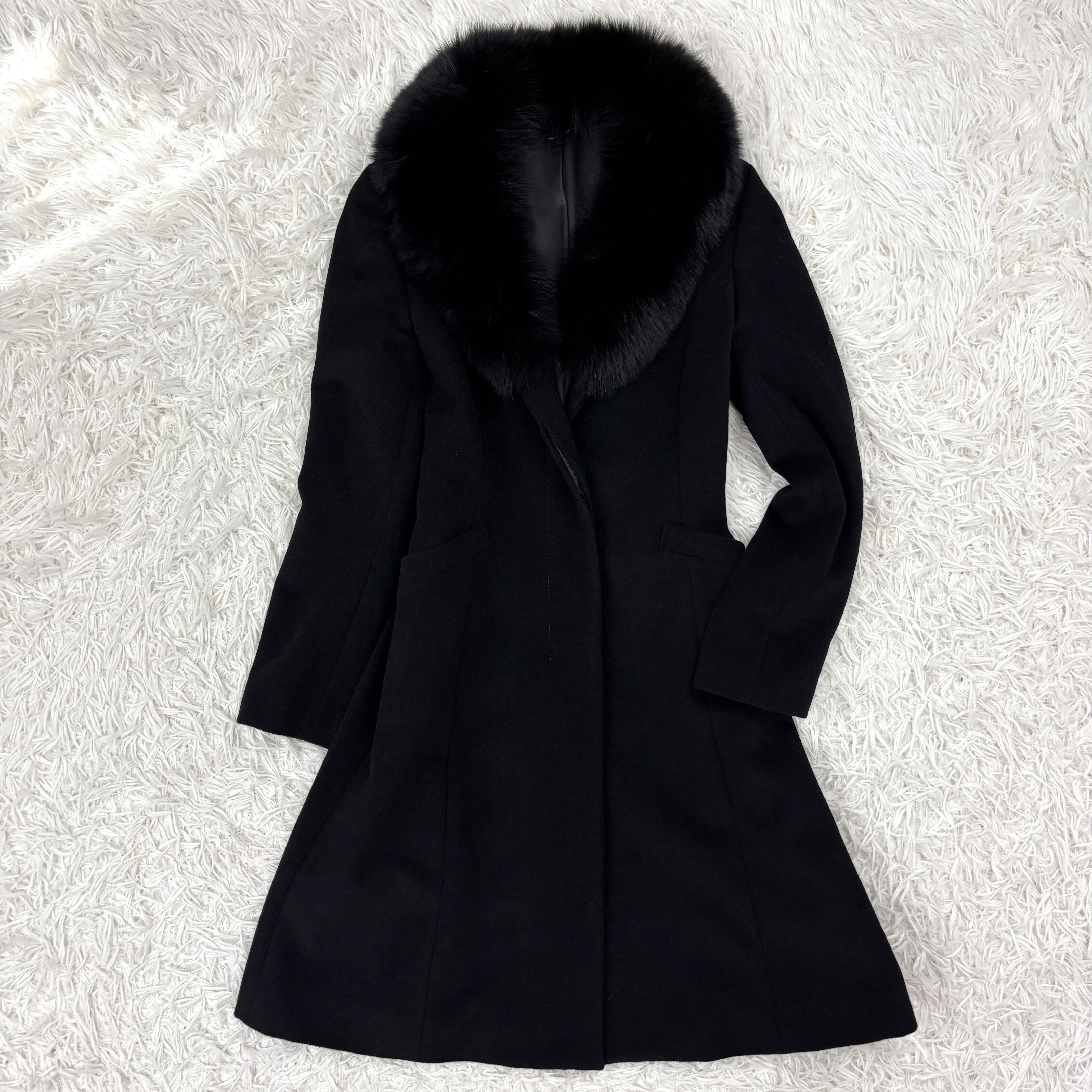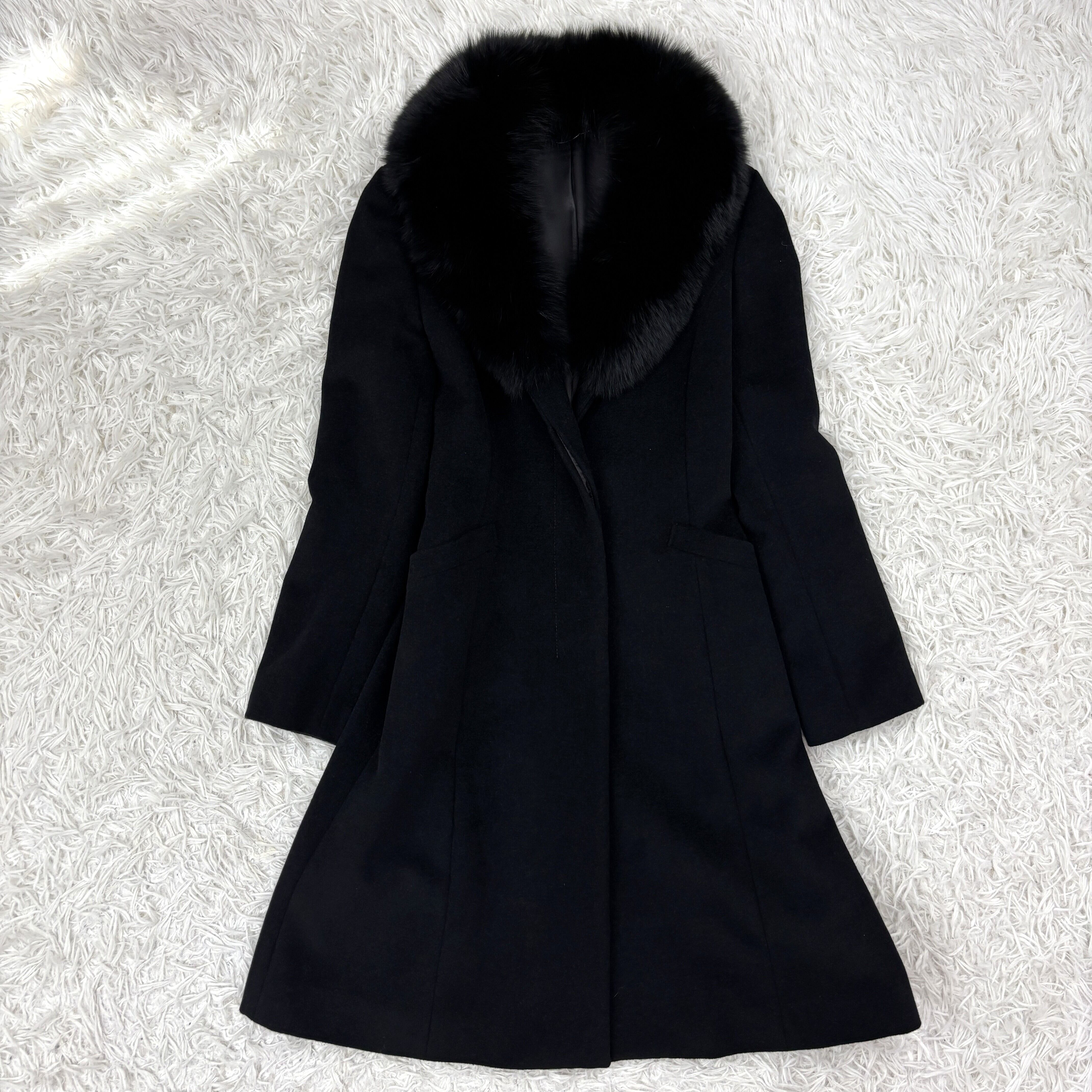 高級感のあるブラックカラーに取り外し可能なフォックスファー襟があしらわれており、上品で洗練された印象を演出してくれます。